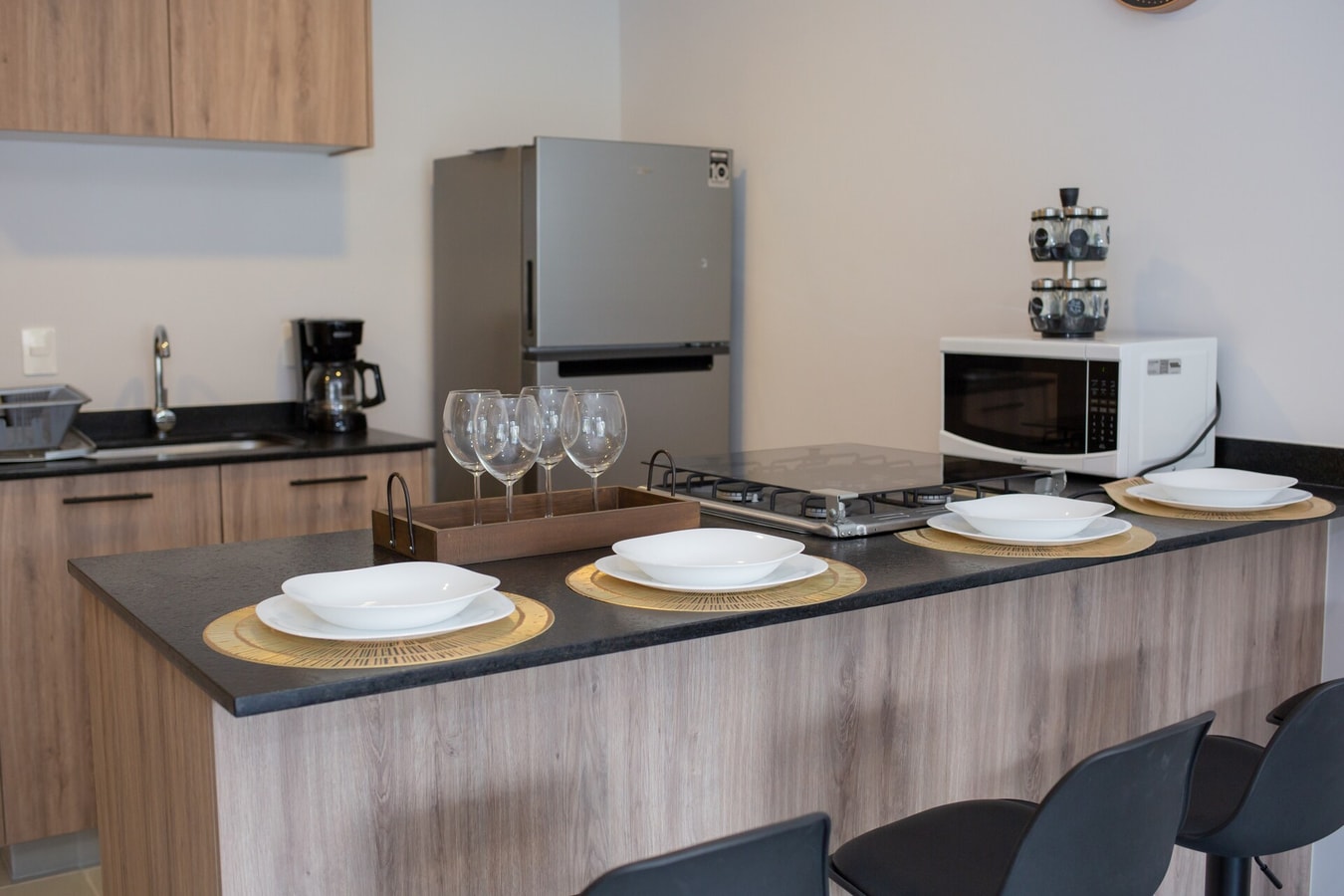 Este departamento de una habitación está diseñado para que te sientas como en casa desde el primer minuto. Lo que más disfrutarás es la abundante luz natural que llena cada rincón, creando un ambiente muy acogedor acogedor. Cuenta con una cómoda cama tamaño Queen ideal para un descanso reparador y cocina completa equipada, lista para que prepares des un desayuno rápido hasta una cena romántica. Es el espacio perfecto tanto para viajes de trabajo o una escapada romántica.