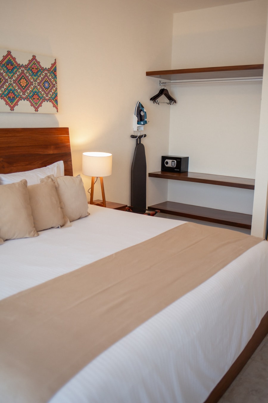 Disfruta de una estancia cómoda y práctica en este acogedor departamento de 1 habitación, ideal para viajes de descanso o trabajo. El espacio cuenta con una recámara privada, frigobar, cafetera con café de cortesía, televisión y artículos básicos para que te sientas como en casa. Es un lugar perfecto para relajarte después de un día en la playa o explorando la zona.